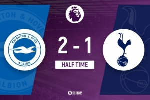 全文摘要:英超第5轮,布莱顿主场2-1领先热刺。上半场明特反越位破门,阿亚里世界波建功,助布莱顿两球领先。热刺的理查利森在乱战中扳回一球。半场战罢,比分定格为2-1。