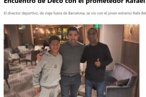 体育资讯9月25日讯 西班牙媒体《每日体育报》报道,巴萨体育总监德科在酒店与年轻边锋拉法-贝利尼奥及其父亲会面。