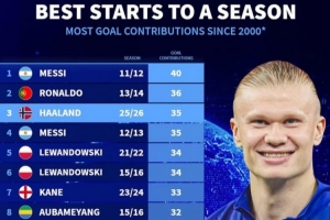 全文摘要:哈兰德本赛季表现神勇,各项赛事已直接参与35球。这一数据使他位列新世纪单赛季同期参与进球榜第三位,仅次于梅西的40球和C罗的36球,展现出了极强的进攻效率。