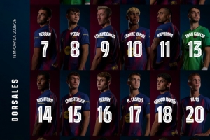 全文摘要:巴萨官方公布了新赛季一线队球员号码。门将特尔施特根穿1号,队长阿劳霍4号。莱万身披9号,亚马尔则获得传奇的10号。年轻球员库巴西(5号)、加维(6号)和佩德里(8号)等悉数在列,拉什福德将穿14号。