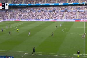 Archivo VAR:VAR在皇家社会vs皇家马德里比赛中出现失误。赫伊森抓住并推倒了奥亚萨瓦尔,但他并非最后一名后卫。